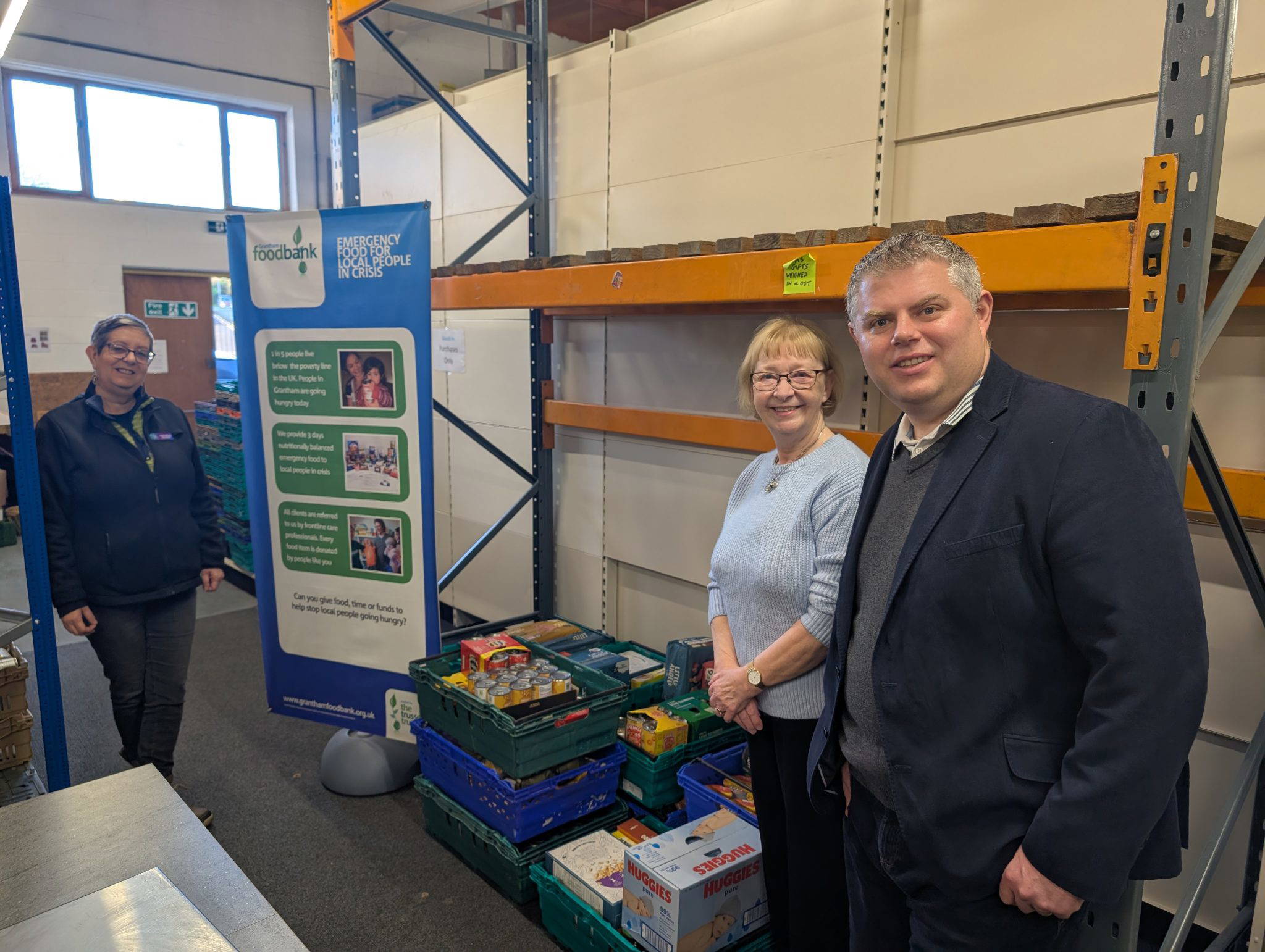 In January, Andrew Martin, Chairman of Grantham Business Club, and Deborah Wylie, the club’s Treasurer, visited Grantham Foodbank to deliver supplies purchased with the funds. They were warmly welcomed by Dorothy Gaughan, Grantham Foodbank Co-ordinator, who gave a tour of the facility and shared insights into the critical work being done to support struggling families and individuals.